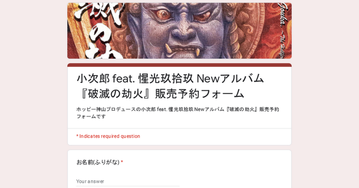 小次郎 feat. 惺光玖拾玖『破滅の劫火』 CDの予約購入詳細
